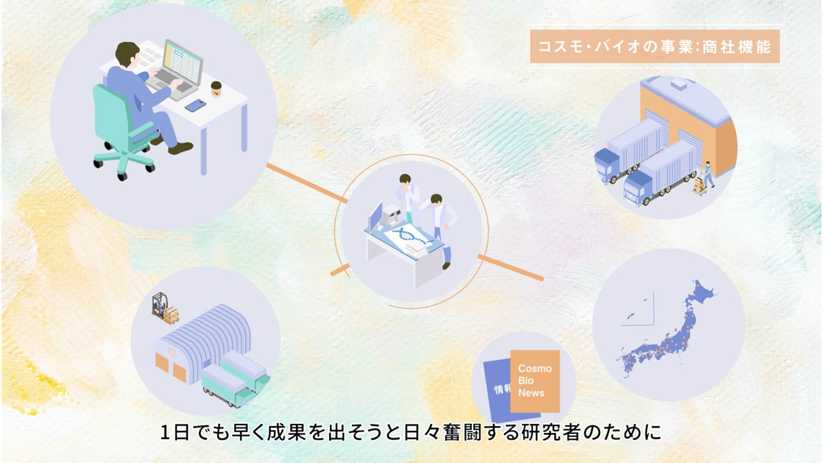 3 一覧ページへ 実写+アニメーション制作実績 COSMO BIO 試薬や機器、臨床検査薬の仕入れ販売を行う専門商社様の会社紹介動画を担当。構成、撮影、編集まで全行程担当させていただきました。制作期間は約2ヶ月。